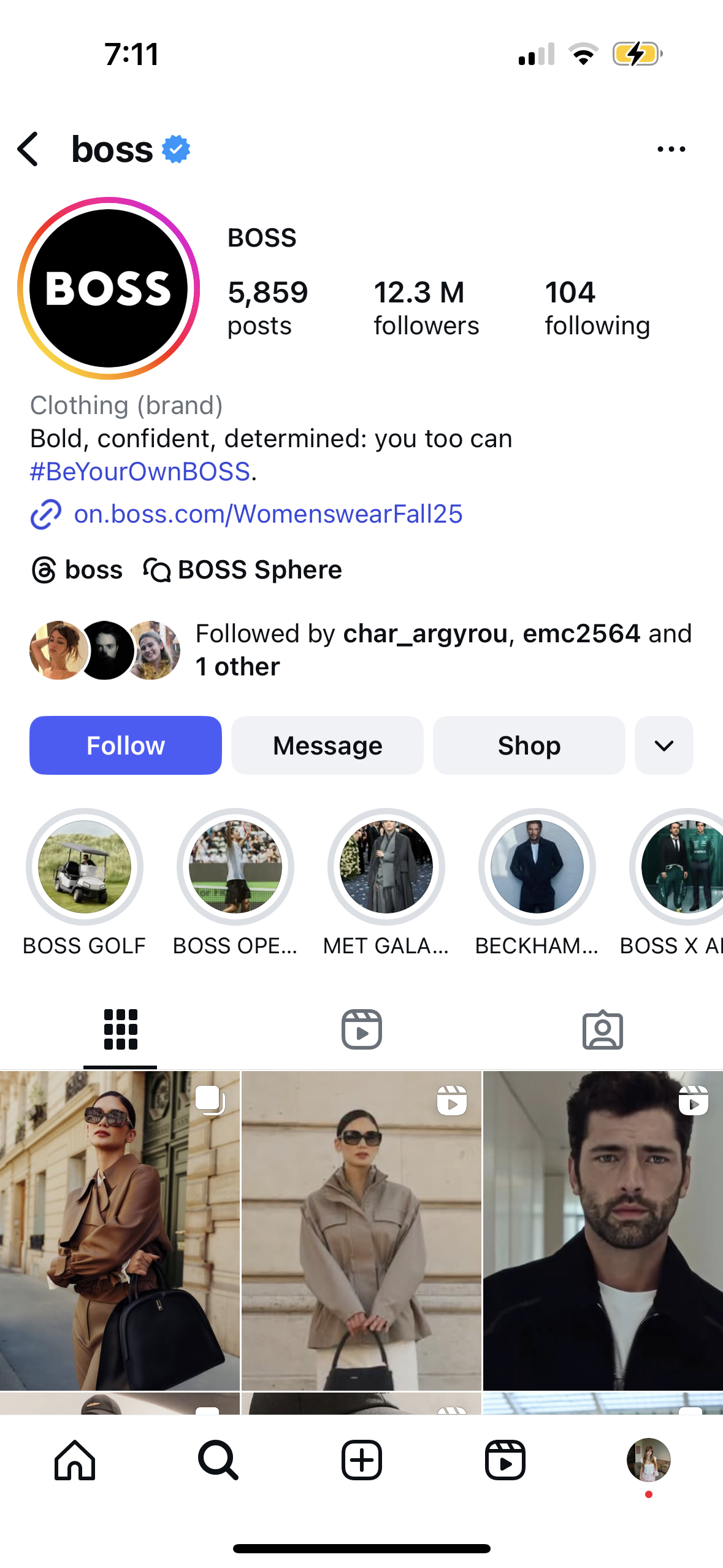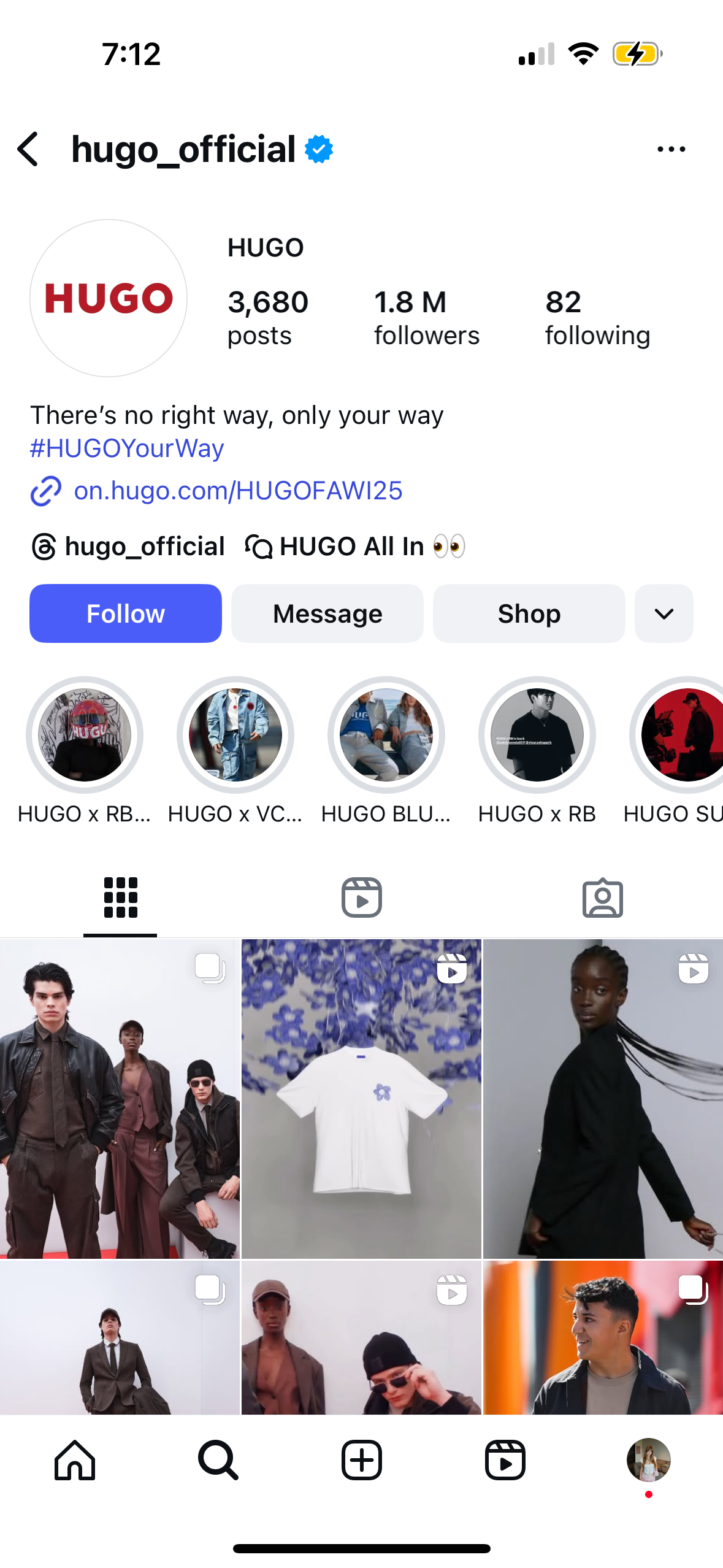 Their social Media accounts are split into their two main brands- Hugo and Boss, appealing to the global market. Their most dominant platform is Instagram, their BOSS account sitting at 12.3 million followers and Hugo at 1.8 million (Instagram, 2025).